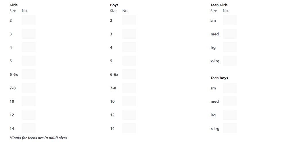 Jacket Racket has provided clean, gently used winter jackets to families since the 1980’s. They provide coats, snowpants, hats and mittens for families struggling. If you need any of the following, please email Ms. Casagranda accasagranda@cbe.ab.ca with your order. See the chart below for sizes: